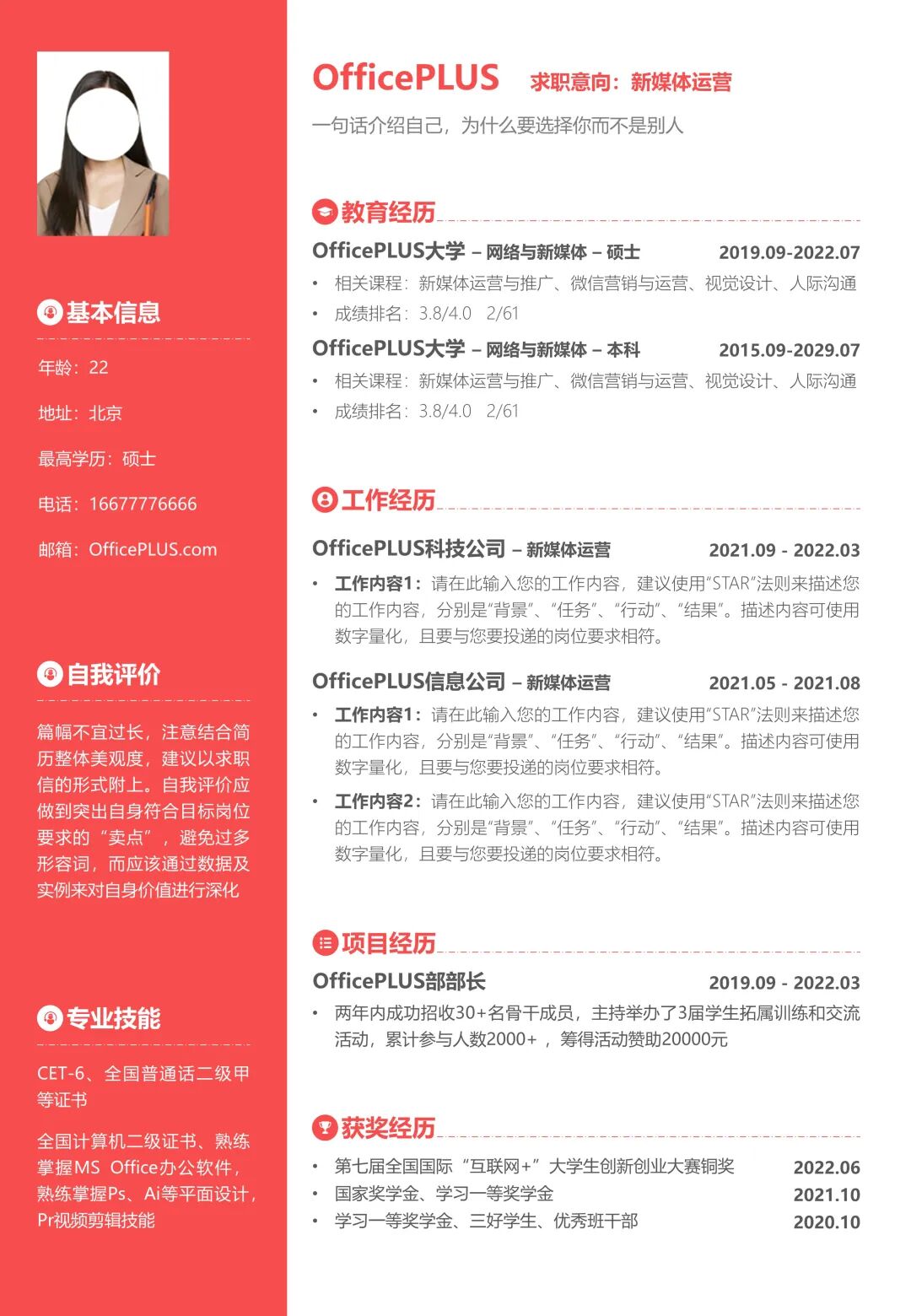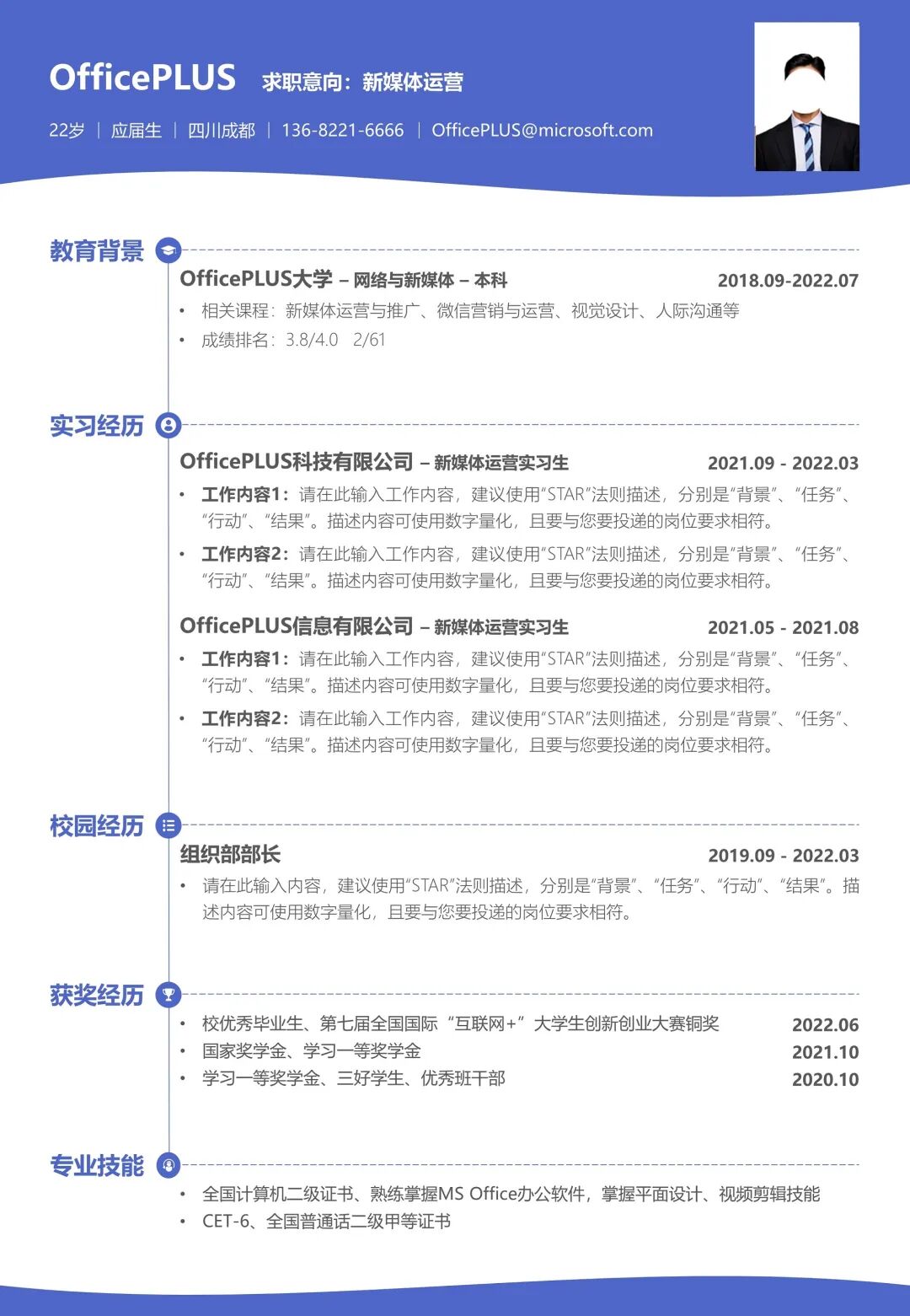 老规矩,文末送上简历模板大福利,快快进入officeplus.cn下载!
