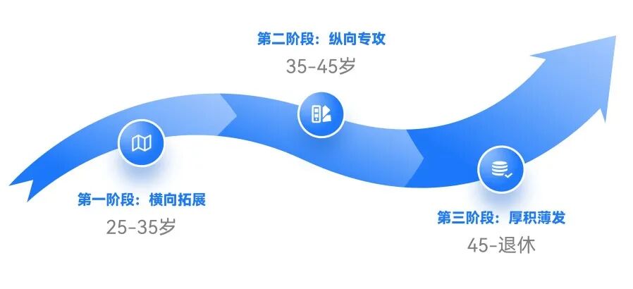 在职业生涯的后期,知识结构趋近稳固,成长速度放缓,但相较于前两个阶段,你更具广阔的视野和敏锐度,拥有更多的人脉和资本。