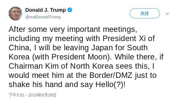 意料之外是在于,前一天还正在大阪参加G20峰会的特朗普总统通过“推特”邀请金正恩于30日在板门店面基会面,金正恩当天便接受了邀请,约见方式之奇特、效率之高,令人意外。而情理之中指的是,特朗普与金正恩的私人关系保持的不错,金正恩愿意给特朗普面子,且这种约见方式符合特朗普的风格,高效率的回应也符合金正恩时代朝鲜的外交风格。