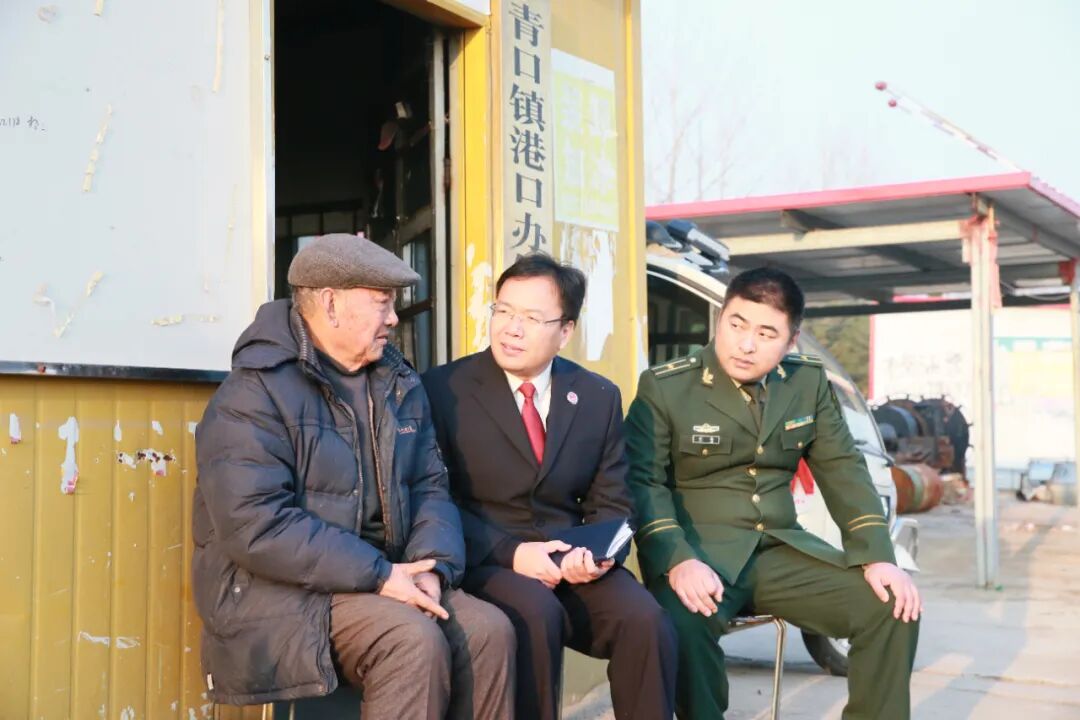 灌南县检察院检察长张立(中)与海警侦查人员共同走访渔民(摄影:马先)