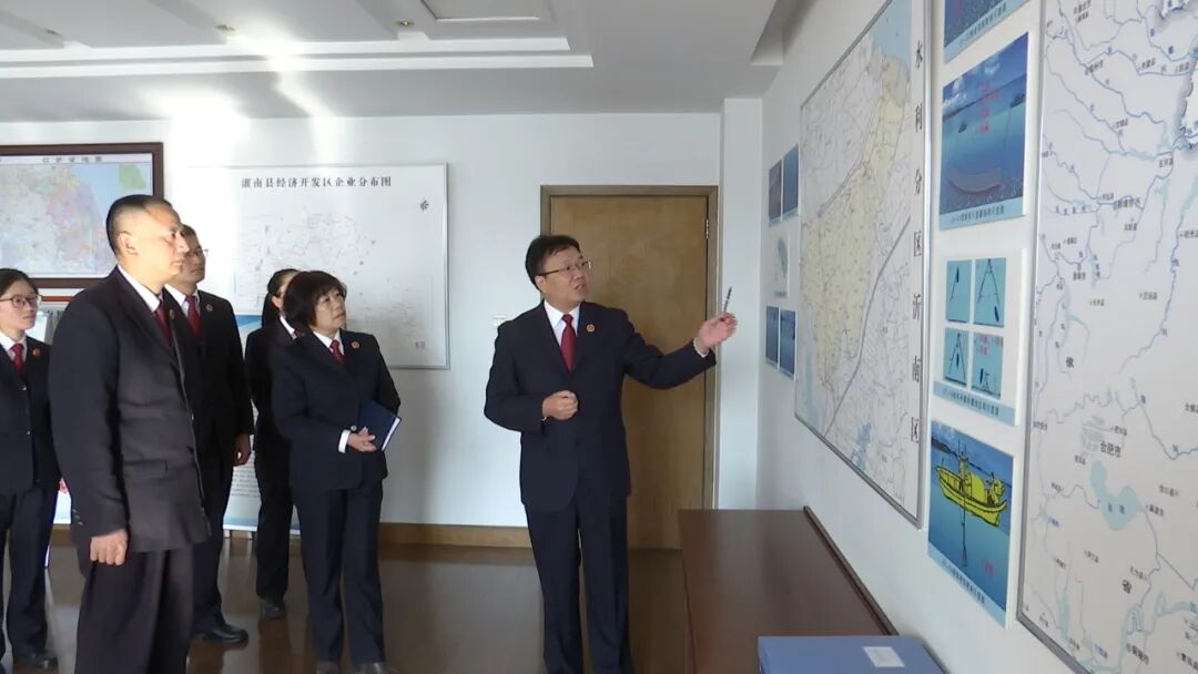灌南县检察院检察长张立(右一)带领干警研究区域环境资源状况(摄影王健安)
