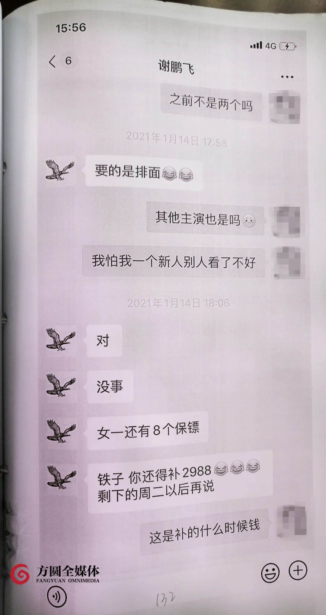 朱玲有些担心自己会被说成耍大牌,还问谢鹏飞:“其他主演也是吗?我怕我一个新人,别人看着不好。”第二天,她又重申了自己的观点,得到的回复是,“要的是排面”。