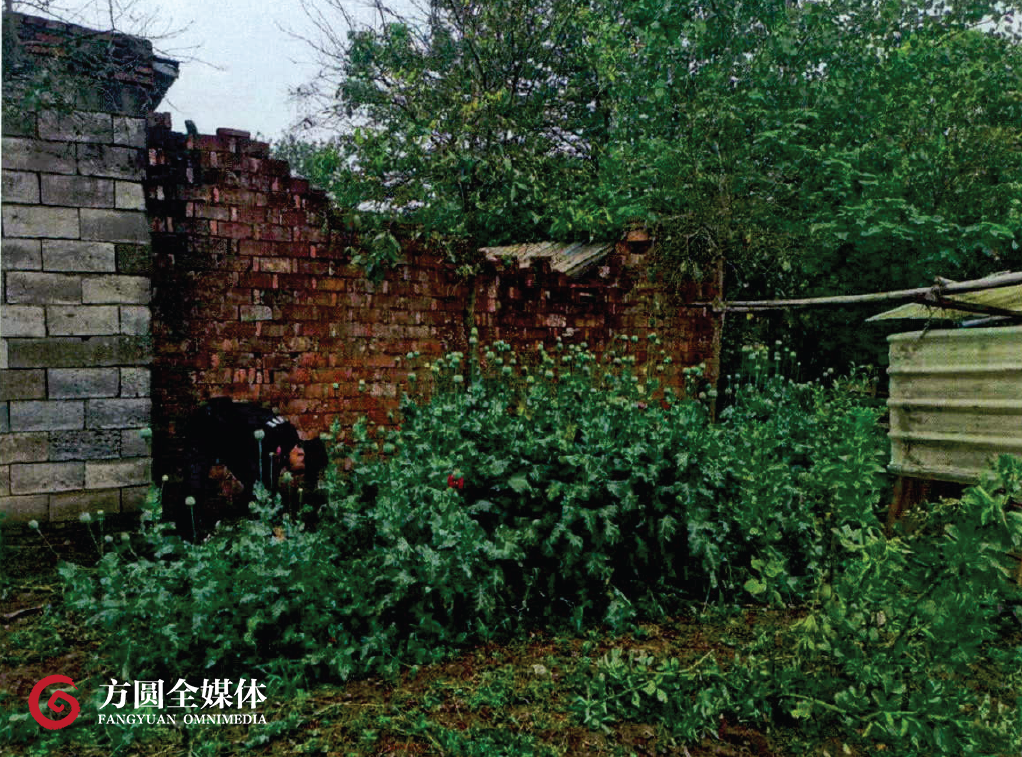 2021年5月4日,张家港市公安局民警赶到李大成家中,李大成当即承认自己种植了罂粟,带领民警到后院取证,并配合民警对这些非法种植的罂粟植株予以铲除(图片来源:受访者供图)