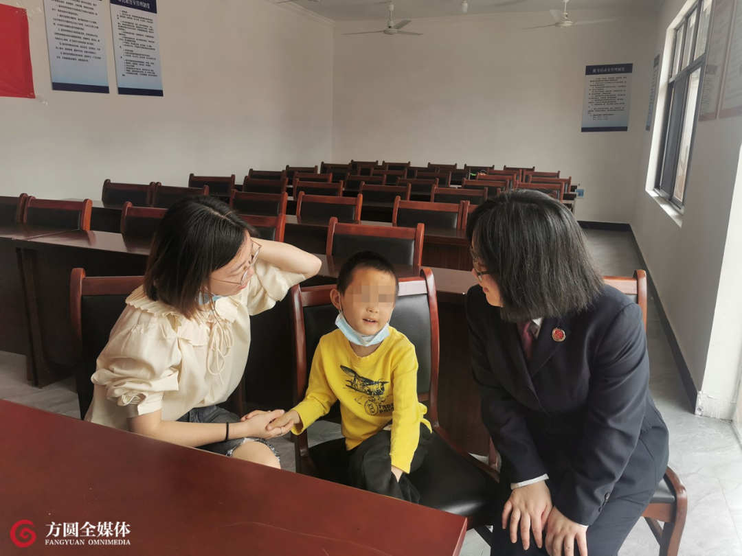 余江区检察院检察官和未成年人社工对小海进行心理疏导(图片来源:受访者供图)