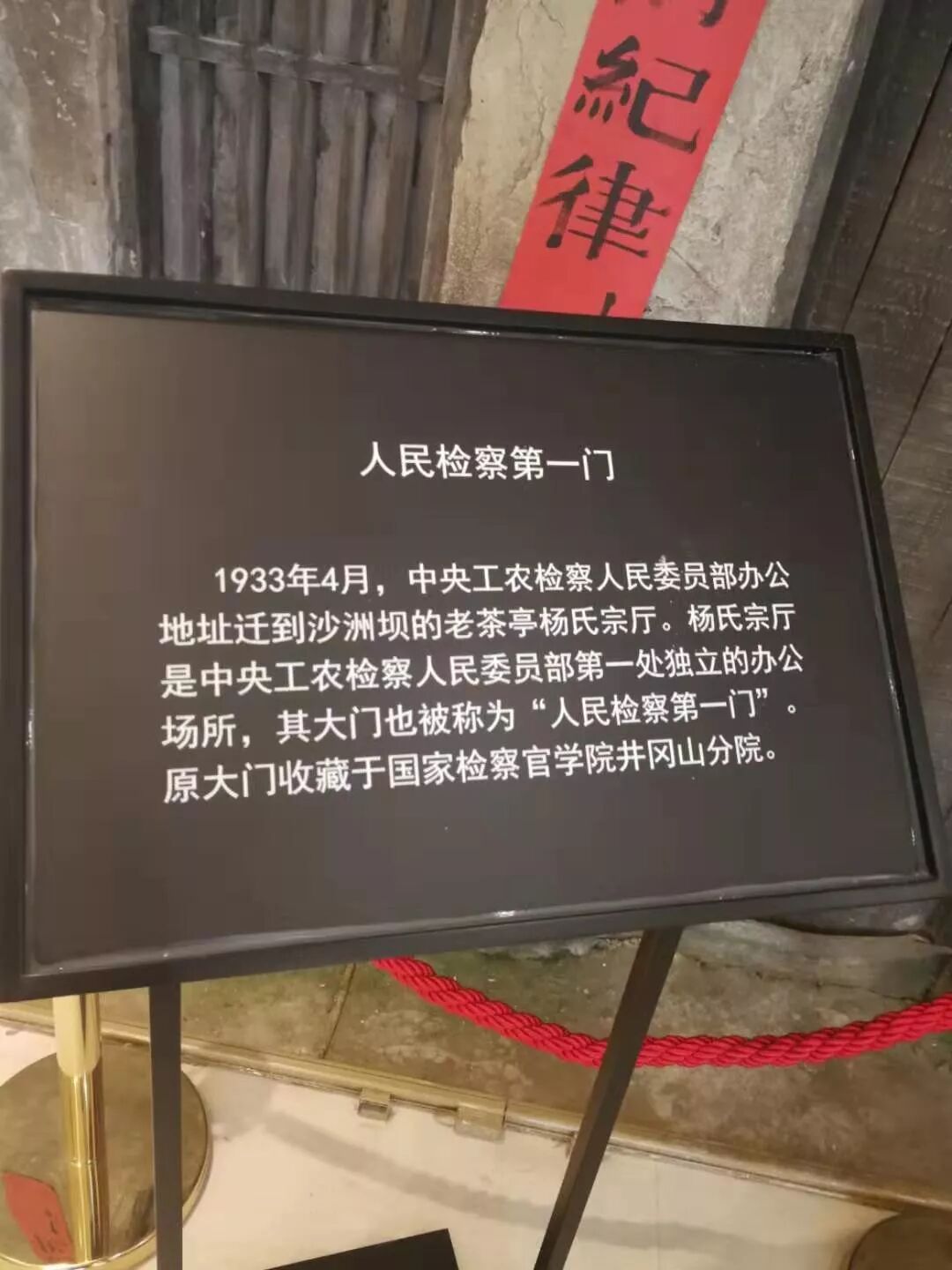 两年后,中央工农检察人民委员部随着中央政府迁到沙洲坝,从此,工农检察人民委员部有了自己独立的办公场所——杨氏宗厅。这扇木门,就是杨氏宗厅的一部分,是2005年人民检察博物馆副馆长刘志成和当地检察系统的同事们花了3万元收回来的,当时他从赣州找了一辆货车,走了400多公里路拉到井冈山。
