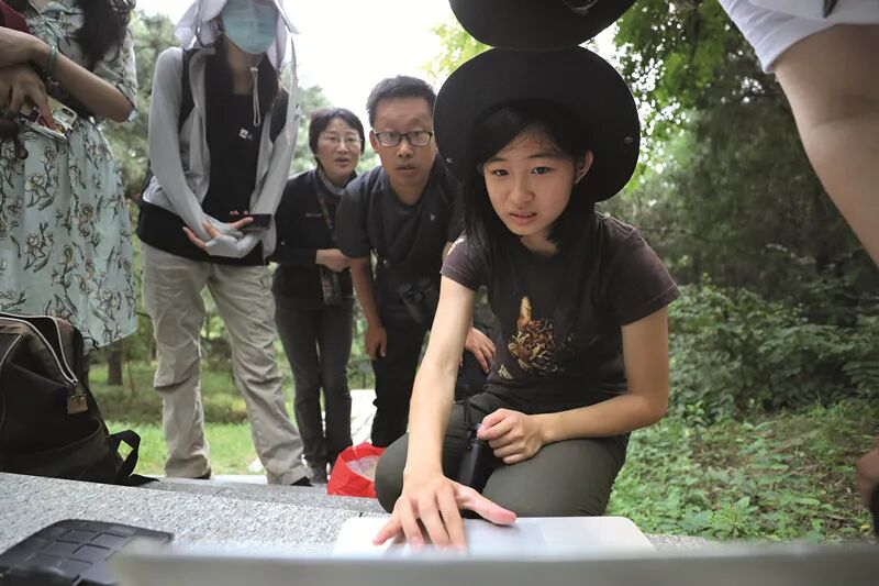 奥林匹克森林公园是架设红外相机的地点之一,陈雁之和小伙伴们席地而坐,迫不及待地打开电脑查看满满的“收获”。