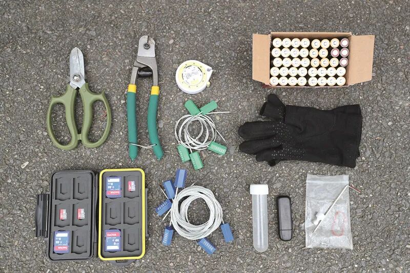 陈雁的“神奇口袋”中装有枝剪、米尺、塑料瓶(收集标本使用)、相机SD卡盒、一次性铅封锁、五号电池、红外相机等必备工具。
