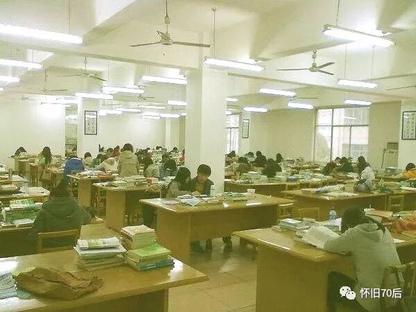 在这种学风的带动下,校园学子思想活跃,学风还是非常好的。演讲辩论、模拟法庭、办报办刊,引一时风起之盛。但凡学校能提供良好自习条件的场所,一座难求,“占座”和“反占座”成了一道景观。上图没人的位置,都堆着一摞书籍,那是占座者的杰作。
