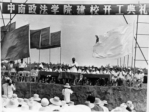 5.建校典礼。80年代,中南政法学院就是在这样一片偏远的荒地上重新建校。建校之初被录取的中南学子,步入校门之时,大多感到失落。他们没想到印象中拥有长江大桥这样巍峨建筑的大都市武汉,还有这么偏远荒凉的地方。很长一段时间,公交车到民院后就不再前行,同学们要下车步行很长一段距离才到学校。