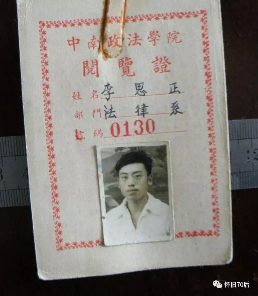 6.不知年代的阅览证。这是一张来自网络的照片,很惊喜居然是中南政法学院的阅览证。只是,但从照片上看不出年代。但从证件使用繁体字来看,极可能在汉字简化之前,也就是50年代。证件极其简陋。照片上是帅小伙,今天也已是儿孙满堂了吧?