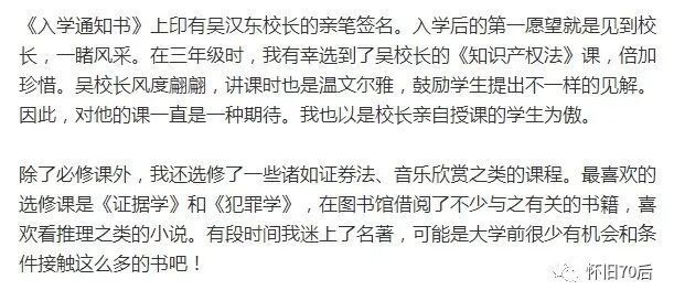 那时的政院学子认真且较真,敢说敢做,执着于获得真知灼见,真是才情并茂,志向高远,风华绝代。谈理想,论时事,辩真理,精益求精,孜孜不倦。“模拟法庭”里人才济济,开庭便是激战,当年的最佳辩手今日不乏成为了法学大咖,政界良才,商海巨鳄。对于这些人与事,我膜拜、遥望,从来只是站在不起眼的角落里,默默的欣赏。我的理想,如今想来只不过是藏在海市蜃楼后面的霞光,明艳但终究只是配角和龙套。
