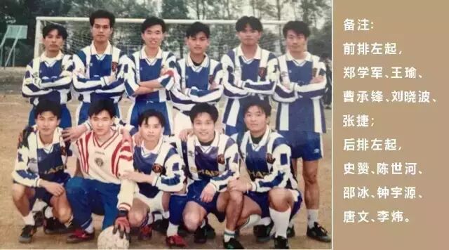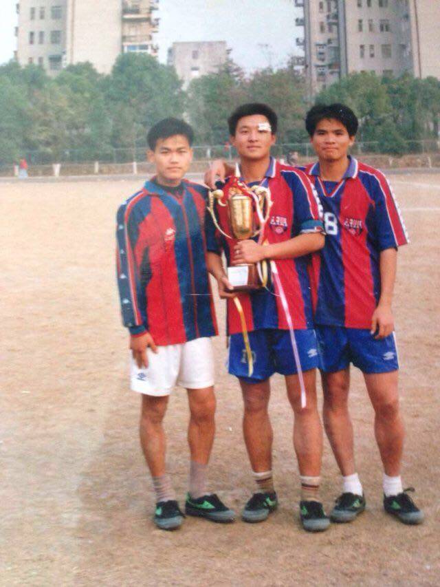 94级里最终坚持到最后的只有陈世河、曹承锋、我以及尽管后来成了替补依然坚持着的帅哥莫国勇。11号左前卫曹承锋是后来的队长,是那种一看就像政工干部的安徽人,典型的老师喜欢的学生,酷爱倒挂金钩,毕业后算是球队里最早混得好的家伙。很早就是系学生会主席,我从那时起就一直纳闷到现在,都一个系的,为啥偏偏会计专业的人都特别沉迷学习?尽管天天贬低他,但平心而论,14号陈世河无论视野、防守和调度都是一流的,硬朗而意志力坚强,先踢拖后,96级唐文入队后才改回老本行后腰。这厮除了学习不精通,打麻将、喝酒样样精通,却颇有运动天赋,足球、篮球甚至排球都是绝对主力,如果当年有校足球先生评选,此人进入三甲乃至问鼎是没问题的。长期旷课且从不上自习,据他本人吹牛说屡有女生帮其占位也不屑前往,每到考试却能逢凶化吉,当然,考试时小抄被截,被王贞为老师扭耳朵那一幕还是让人印象深刻的。因为人缘颇好,一到饭点逮着人就跟人去蹭饭吃屡试不爽,也屡有同学、老乡主动邀其一起吃饭,当然,人也豪爽,手里有点小钱就阔气地请同学老乡下馆子,因此很是拮据,蹭饭的场景从大一持续到了大四。尚涛从大一开始就在倒时差,昼伏夜出,几乎从来不上课,说是为了出国做准备,一准备就准备了快20年,那种同学间说第一次见面是报到、第二次见面时已经是毕业的那种人说的就是他。最擅长找烟,同寝室的魏勇无论把烟藏得多隐秘他都能找到。后来不愿当替补,改当“教练”,队内几个人英语四级涉险过关,此人功不可没,没白为出国准备了这么多年。8号莫国勇大一开始泡妞就是主业,女朋友一个比一个漂亮,好吧,一个比一个其实就是两个而已。95年遇到了他如今的老婆潘怡,据他本人说从此他大部分时间都去自习了,自习?确定你说的是自习?最终成为武汉女婿定居武汉,作为广东人而言,在外省落户的确不常见,算是为他的花心平了反。一口粤普,据说如今普通话突飞猛进,已经是六级水平了。而我,最大的特点就是低调。