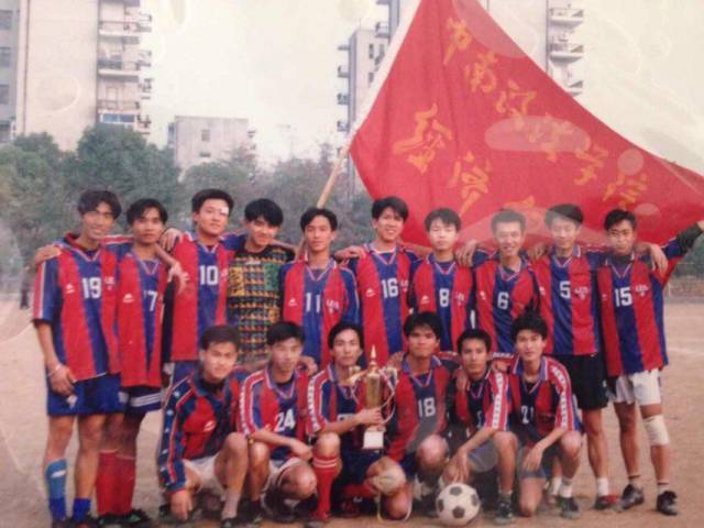 毕业季最让我们纪念的还有一场告别赛,是由我们系队发起的,由经贸系队对战由各球队精英组成的联队,也是95、96、97师弟为我们办的毕业告别典礼,这种类型的告别赛在学校历史上是前无古人估计也是后无来者吧?估计在武汉高校历史上也极为罕见。尚涛的老乡林登峰还因为联队名单遗漏了他的名字很生气,上门来质问。这哥们儿现在还好吗?告别赛的结果已经不重要了,重要的是经贸系在学校历史上留下了浓墨重彩。经贸系后来更名为财经系,2000年政院财大合并为如今的中南财经政法大学,从此经贸系按照专业分拆到了各个学院。但经贸系在96-99年期间的政院足坛人心中依然有着厚重的历史地位。