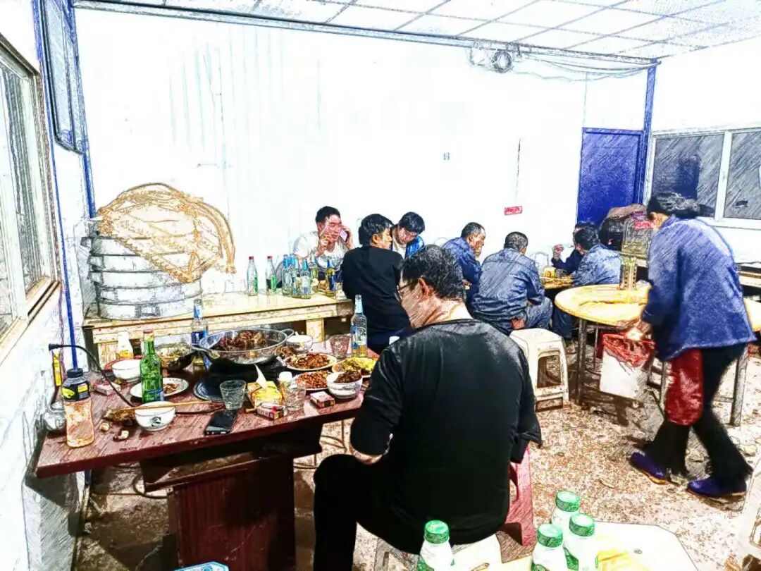 生活区的食堂都签了食品安全承诺书交给各自所属的项目部,承诺不对外营业,然而……这种小馆子很有市井气息,很嘈杂,因为有很多工人来这里吃饭,他们喝着最便宜的酒,抽着最便宜的烟,叫上三五好友在这里喝酒聊天,缓解一天的疲劳。