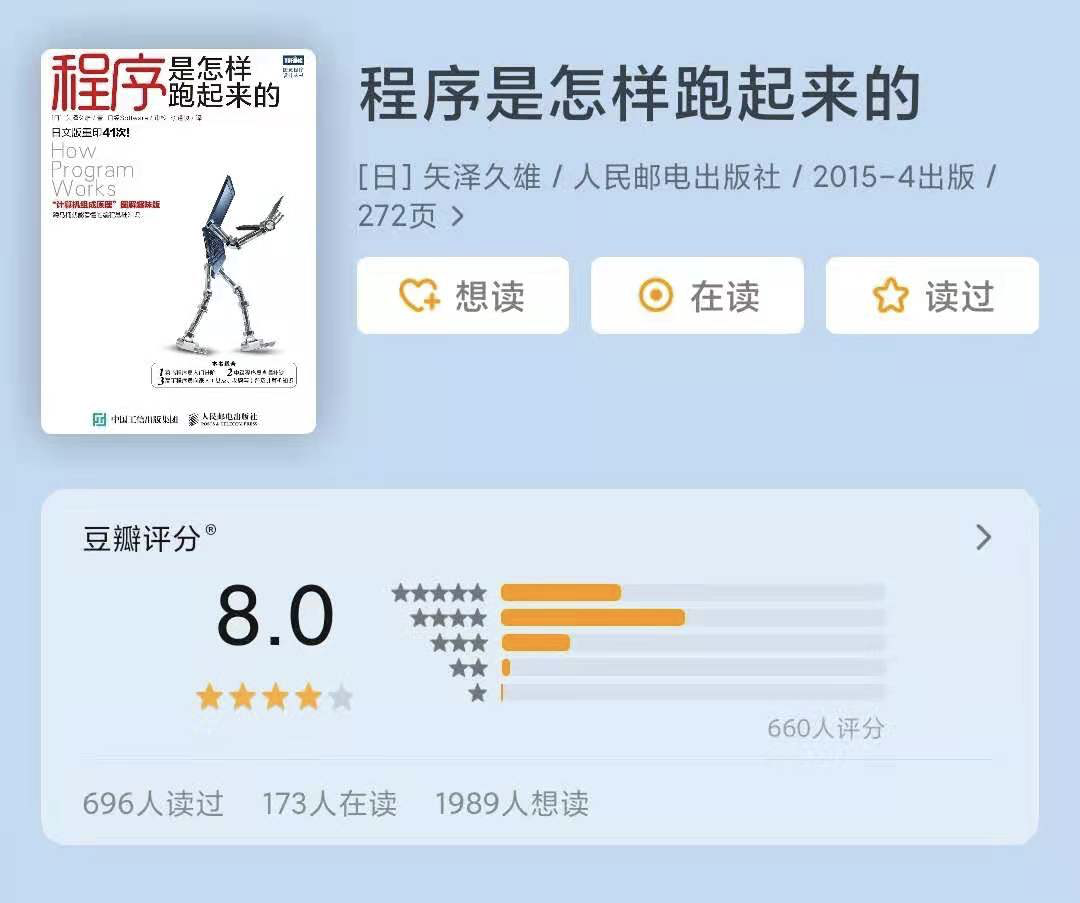 没办法,只好看书了!“书中自有黄金屋,书中自有颜如玉”,只好在书中寻找点快乐啦。这次带的是一本《程序是怎样跑起来的》。
