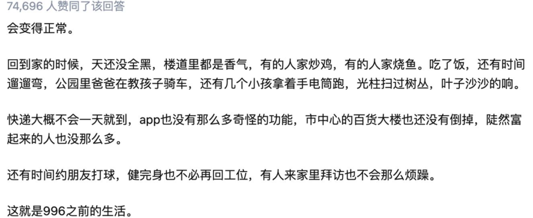 这段不超过 200 字的回答竟然获得了超过 7 万人的赞同,这意味着什么,大家在心里强烈地期盼着,好日子能早一点到来。