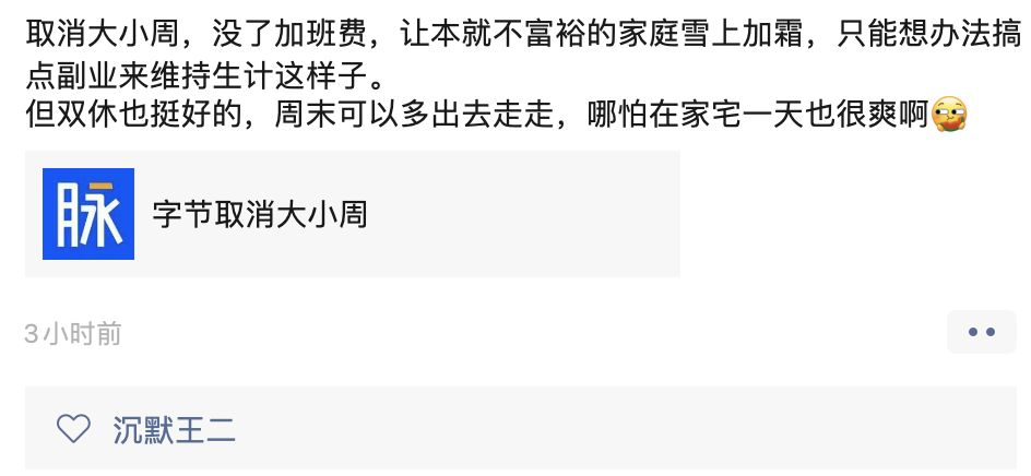 字节这么有影响力的公司终于取消了大小周,有魄力!其他互联网公司应该跟上!