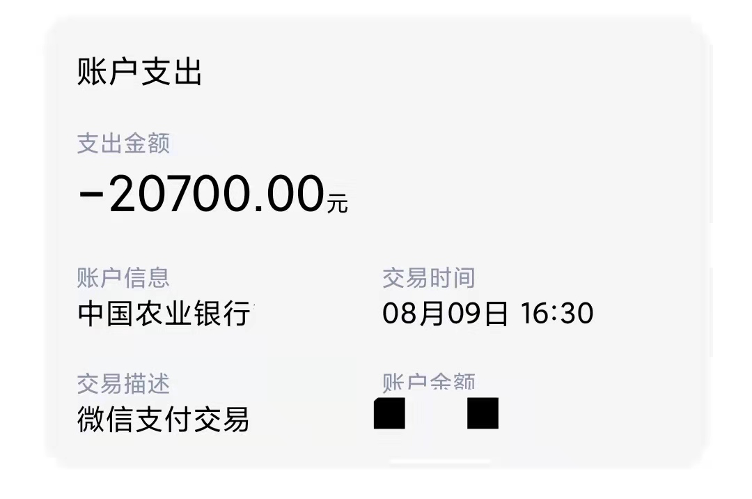 8 月 9 号的时候,给一个兄弟转了 20700 元。