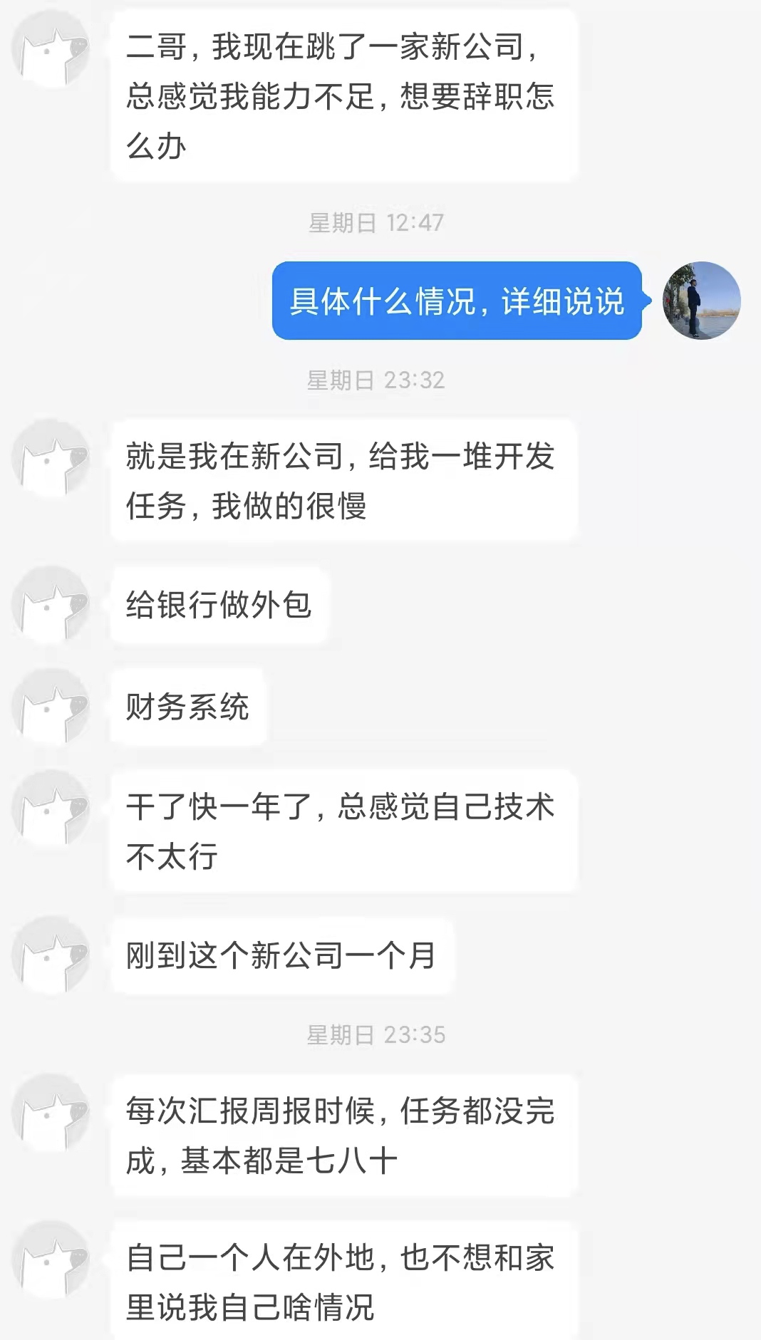 所以,第一步,一定要做好心理建设,先把自己稳住。想着怎么去提高,而不是去想那些无济于事的“辞职”。