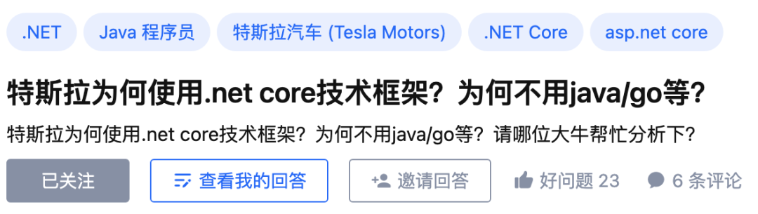 前几天,我在知乎上看到一条热榜,特斯拉这种玩火箭的公司竟然使用的 .net core 技术框架,而不是 Java/Go?