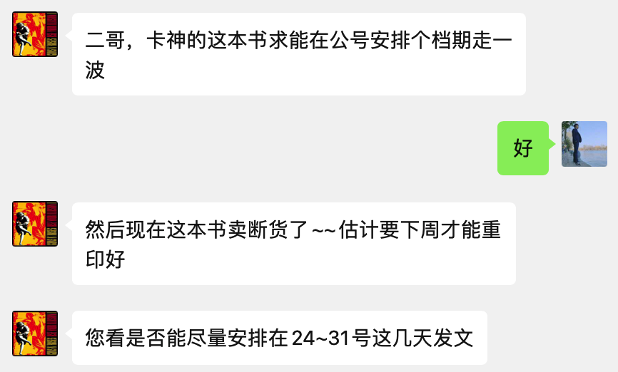 这本书的负责编辑杨老师特意来叮嘱二哥预留一个档期,等补一波库存再给卡神推荐一下。