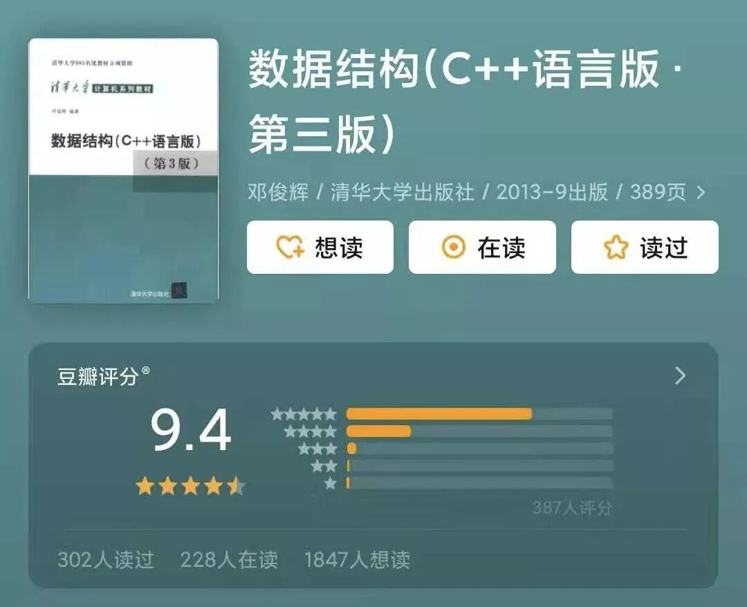 对,清华大学邓俊辉教授编著的,豆瓣评分也蛮高的。这本书还配套了视频课程,是免费的,可以在学堂在线上看,我之前也有推荐过。