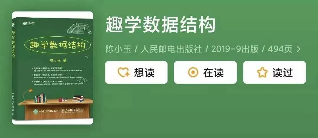 你别说,这本书还挺适合拿来作为算法的入门书呢。后来,陈小玉老师又出了一本新书,叫《趣学数据结构》,我看了,虽然离“趣”字有点距离,但很适合作为一门数据结构方面的入门书。