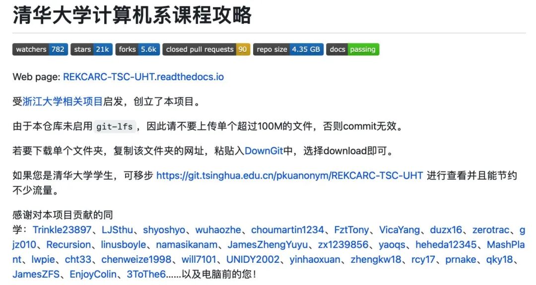 那么趁寒假刷一波清华在 GitHub 上的开源课程,还有 C语言和数据结构,寒假过后,绝壁是卷王中的卷王。