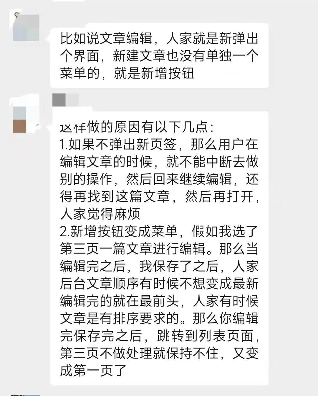 就比如说,我们在做新建文章的时候,在管理端到底是以按钮的形式存在呢?还是菜单的形式存在呢?如果有一个人讲的没道理那还好,但遇到各有各的道理的时候就需要做取舍。
