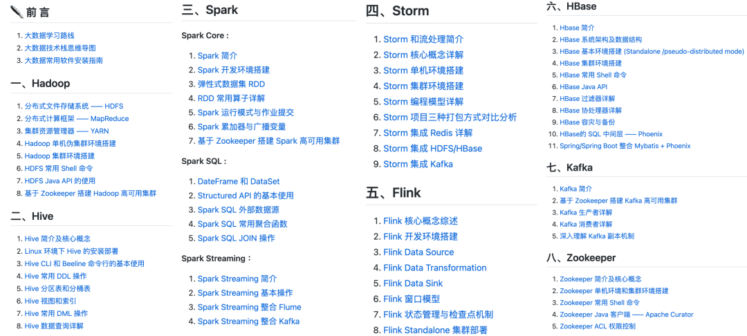 对了,之前有小伙伴问我大数据方面的资料,我在 GitHub 上的仓库 JavaBooks 里有一些,比如就有这份《大数据入门指南》,里面有 Hadoop、hive、spark、storm、flink、hbase、kafka、Zookeeper、flume、sqoop、azkaban 等相关学习资料。