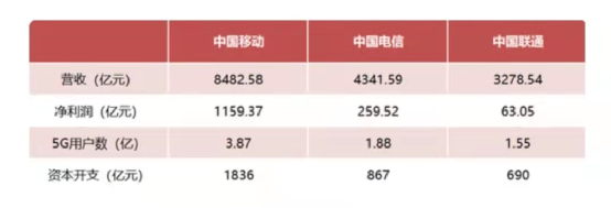 互联网的不断发展,基本实现了人手一部智能手机。不过,手机的使用需要电信运营商的支持。目前,中国有且只有三大运营商,分别是中国移动、中国联通、中国电信。根据三大运营商披露的财报数据显示,2021年的营收达到了1.6万亿元,净利润达到了1563亿元。