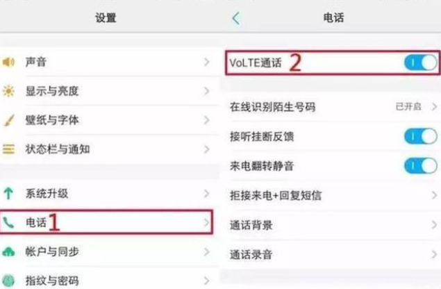 如果你想要关闭HD功能,操作也很简单。只需要打开自己的手机,找到设置,找到电话,点击电话,找到VoLTE通话,点击关闭即可。