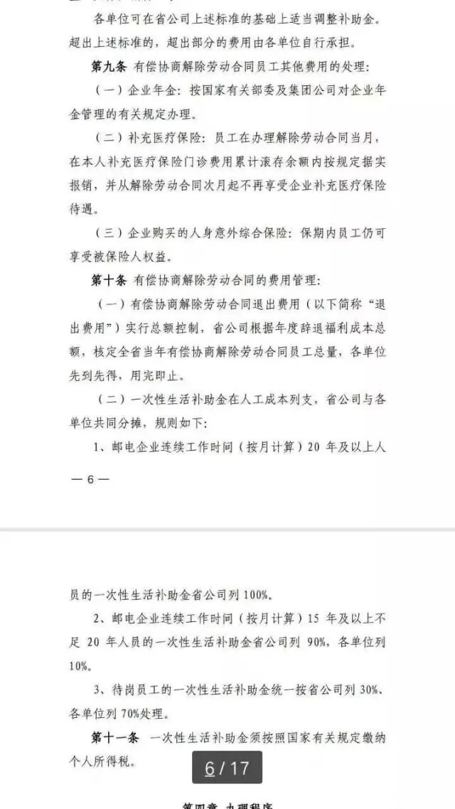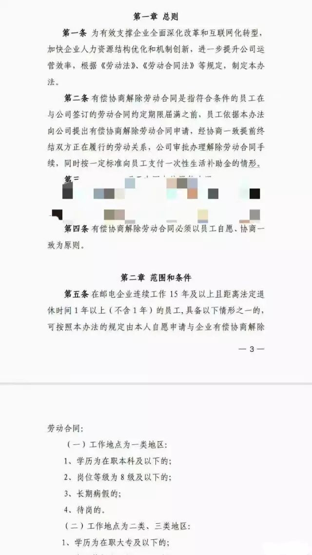 某省运营商开始推行“有偿解除劳动合同”,鼓励员工自愿下岗,公司给予一次性补偿!好的开始~