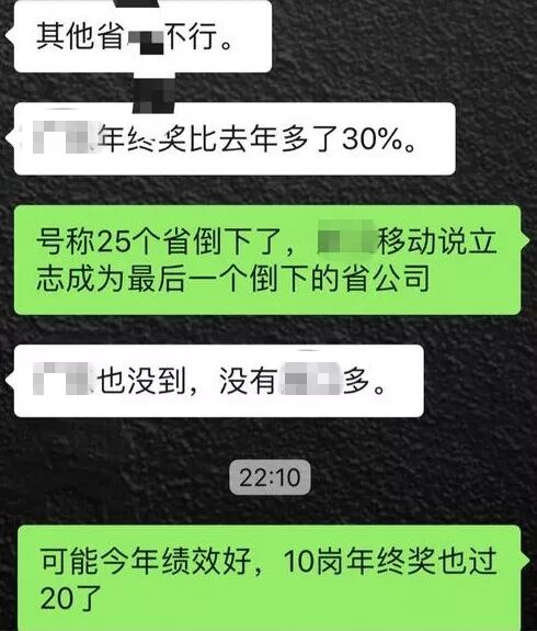 据网友爆料:某省移动公司今年效益不错,10岗年终奖有20W!
