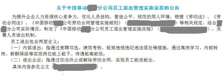 移动某分公司发布员工退出管理实施流程的公告!为提升企业人力资源核心竞争力,优化人员结构,营造公平、规范的用人环境,制定了本实施流程。