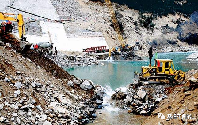 然后要把大江进行拦截,工人们通过爆破岩石围堵住施工的江面,筑起临时的堤坝,这些湍急的水流激荡着白色的浪花很容易就把刚爆破下来的碎石给冲得无影无踪,施工难度非常大,甚至比想象的还要艰难。