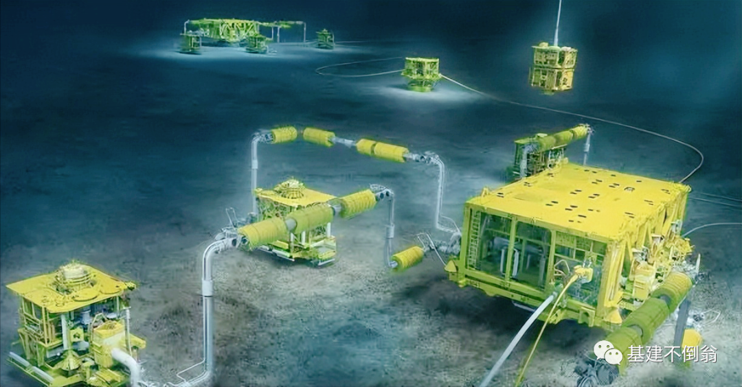 这个海基一号完全是我国自研国产的深海导管架,开采油气的导管从海底矿井位置通过这个输油输气管道把能源抽取上来,输送到运载的线路。
