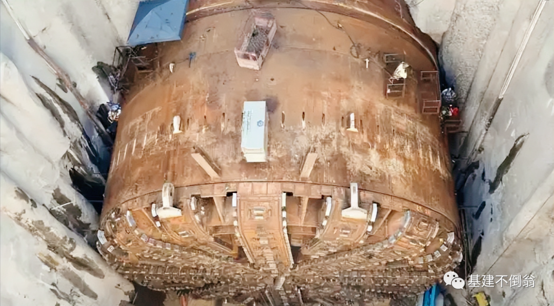这台盾构机非常庞大,长度达到110米长,直径17.45米,重量约7000吨左右,最大的挖掘速度每小时前进3.6米,这个速度是很惊人的,因为要知道直径17米以上,向前推进将近4米,还要切割开岩石和不同层面的泥土层等,施工的难度是很大的。
