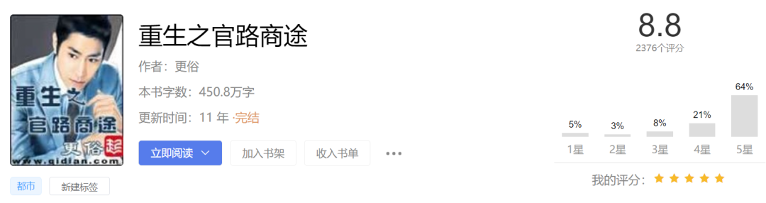 我认为《重生之官路商途》放在这里恰如其分,也只有它才可称得上都市文仙草品类的镇单之作。