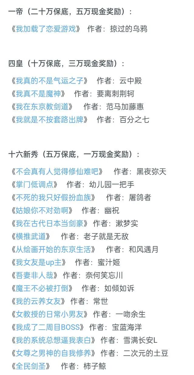 日前起点轻小说分类“一帝四皇”评选结果也出来了,相信不少名字大家都听说过。