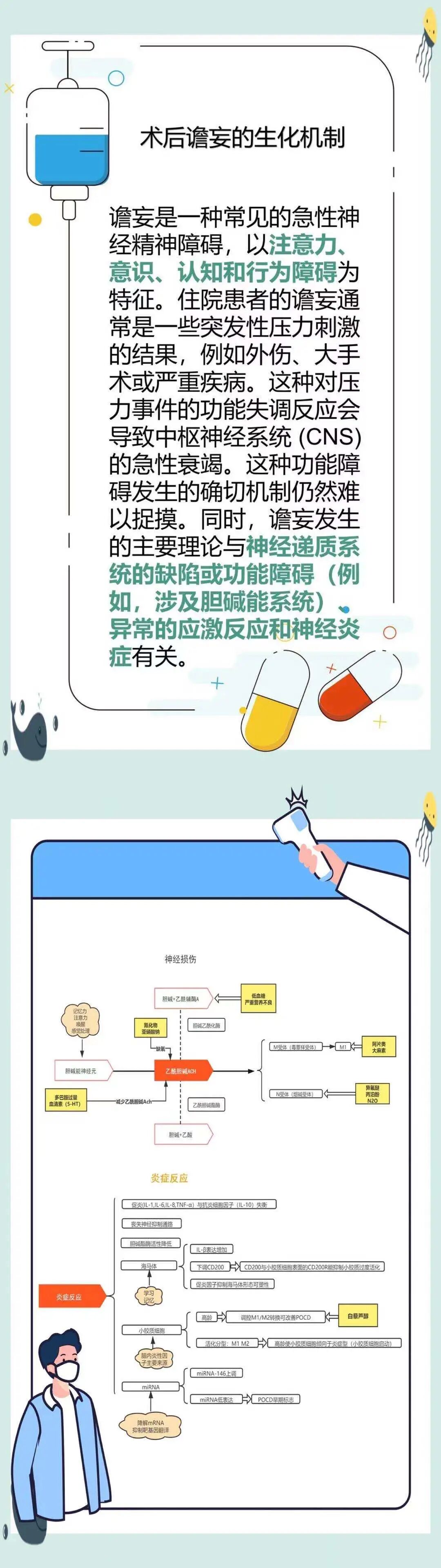 未来对手术、创伤和危重病免疫反应调节的研究可能证明对谵妄和认知功能障碍的预防或治疗是有益的。特别是,细胞因子选择性治疗是一种有趣的方式,可能被证明是有用的。抗肿瘤坏死因子具有可接受的安全性,并在治疗类风湿性关节炎、克罗恩病和强直性脊柱炎等炎症疾病中显示出益处。证据表明,抗肿瘤坏死因子可能有利于预防或治疗过氧化物酶/POCD病。此外,神经炎症与微小核糖核酸之间的关系是一个令人兴奋的新研究领域,有待进一步研究探索。用激动剂或拮抗剂miRNAs调节神经炎症反应是治疗谵妄和认知功能障碍的一种有前途的方法。