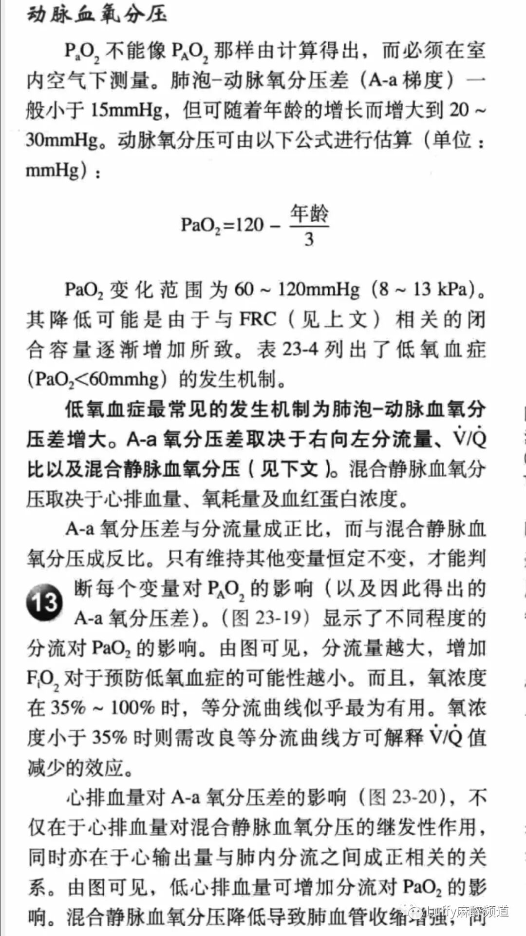 PaO2估算=120-年龄/3 或 100-0.3*年龄