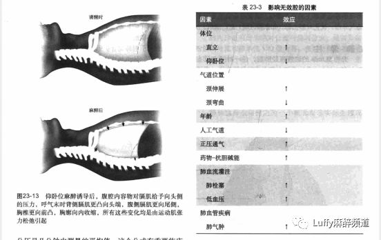 所谓的死腔就是指参与通气但未参与气体交换的那一部分,也就是 Y 型接头和气管导管的部分或面罩或喉罩的空腔。螺纹管的顺应性(膨胀容积)和气体压缩(压缩容积)可增加无效腔,但这种效应产生的影响微乎其微注。