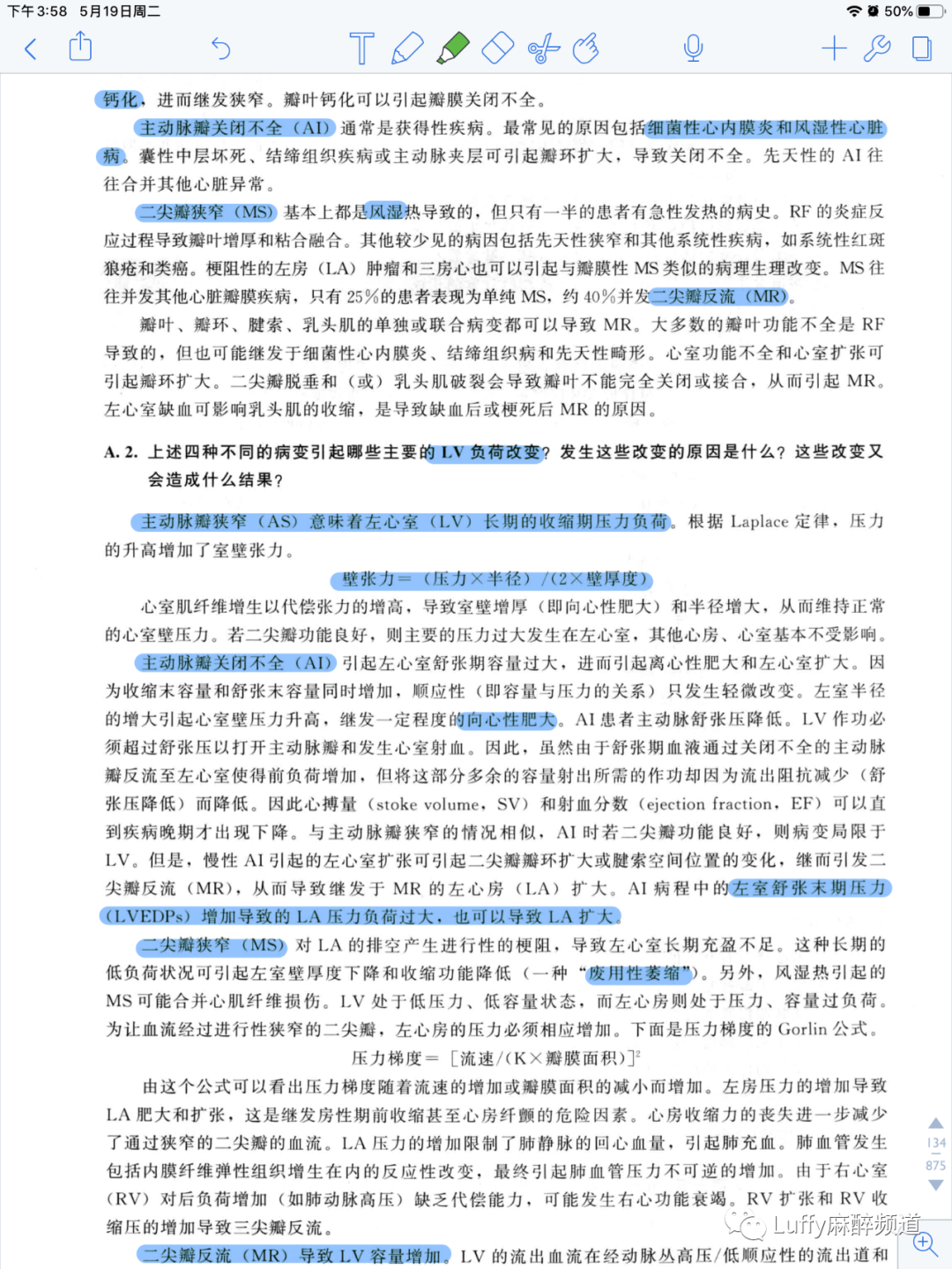 1.AS、AI、MS、MR的病因有哪些?LV负荷的改变、TEE分度标准、症状与体征、术前用药、术中麻醉诱导、CPB前中后管理要点
