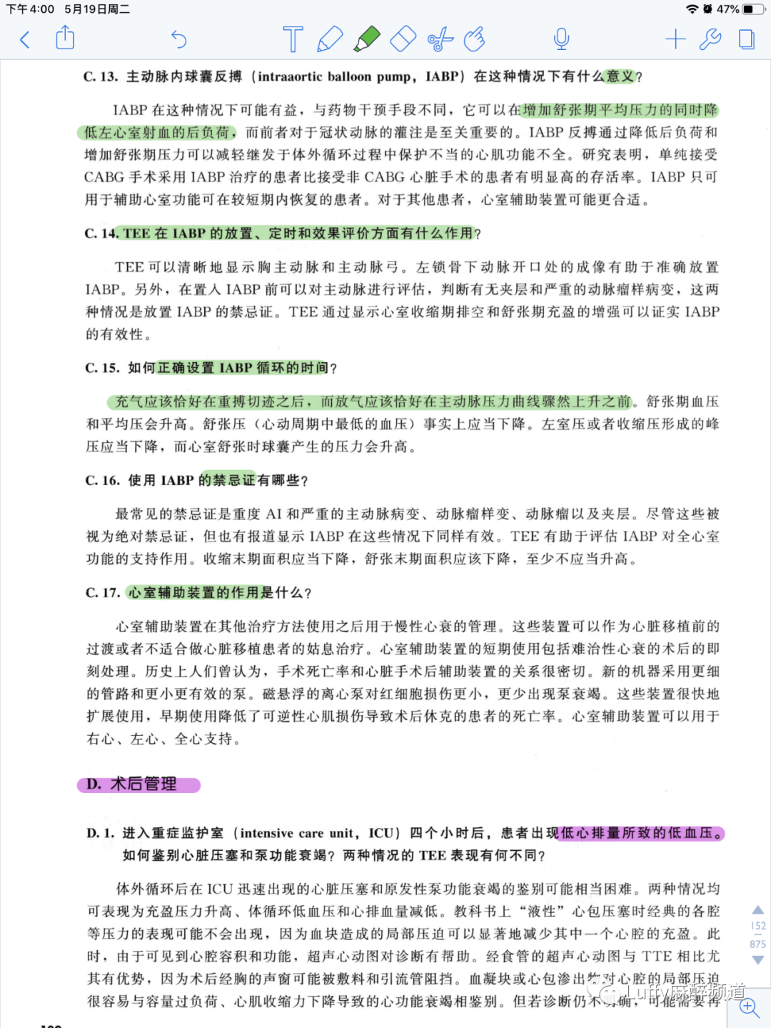 利用TEE等监测全面评估患者心功能、瓣膜情况、容量
