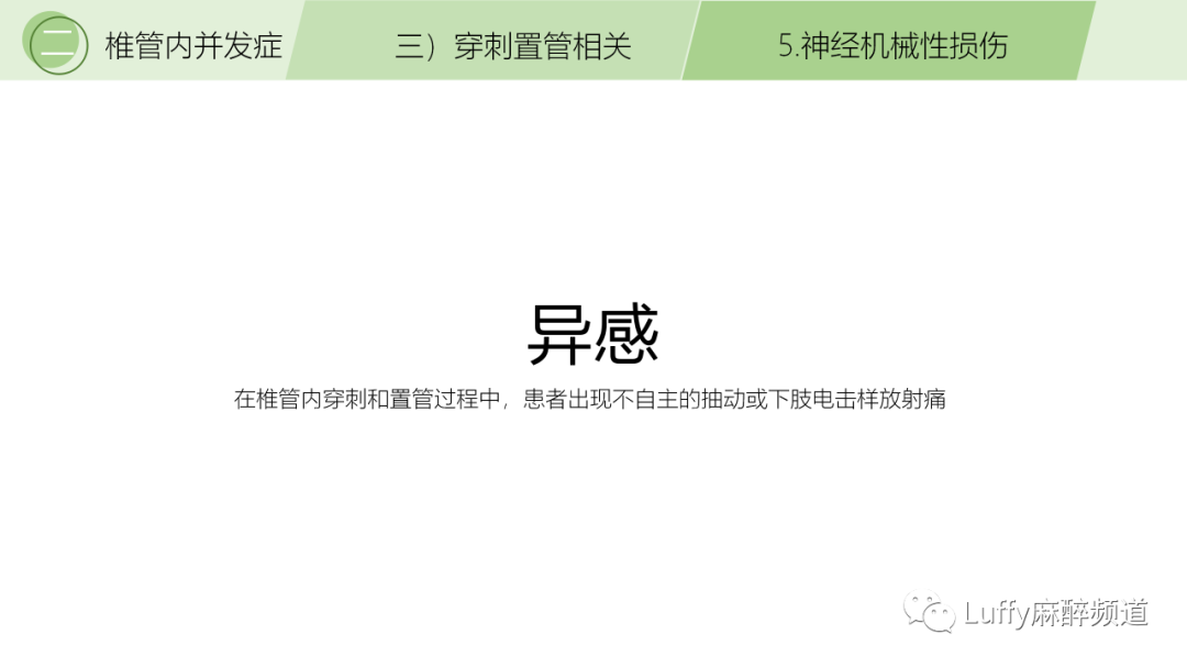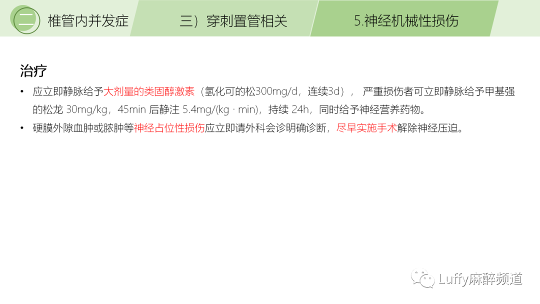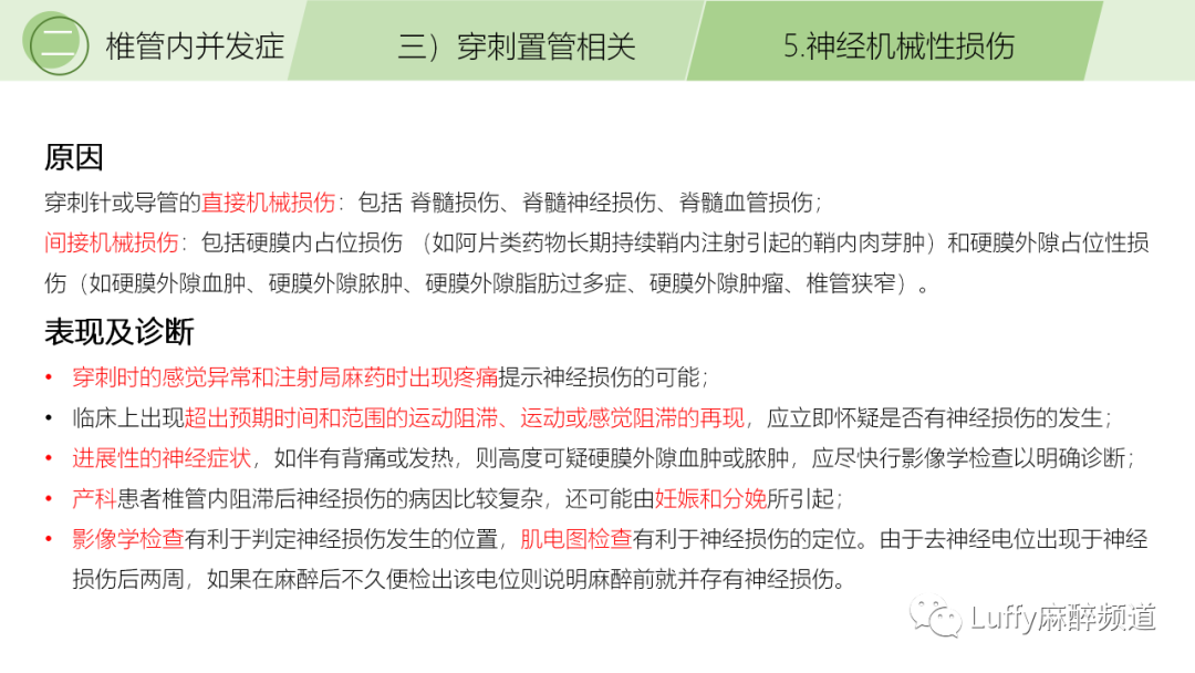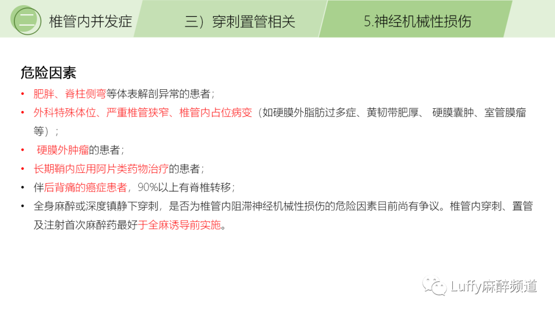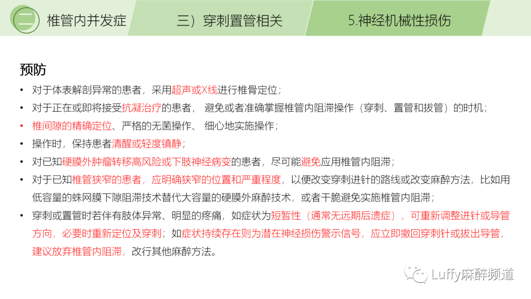 4. 具有围麻醉期神经损伤的预防意识,麻醉操作应仔细,术中、术后应密切监测。