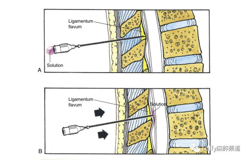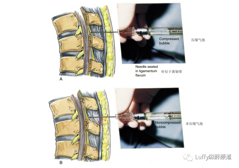 硬膜外阻滞:显示气泡压迫和非压迫的阻力丧失技术。