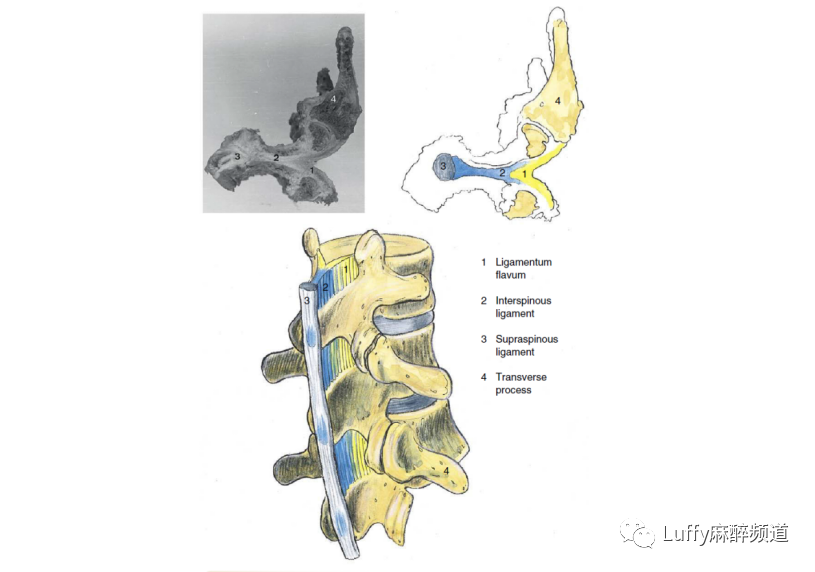 神经轴解剖学:腰椎韧带(摘自《人体腰椎黄韧带解剖学研究》。麻醉分析。1984;63:499-502,经允许。)