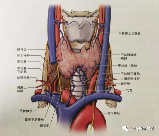 图1颈部解剖。注意观察颈内动脉、颈内静脉及胸导管的相对位置
