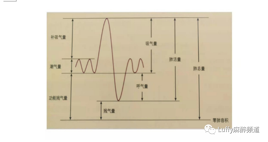 解析:可以认为肺是由4个“静态”肺容量所组成,这些静态肺容积不能进一步被划分(图5)。潮气量(VT)是正常情况下平静呼吸时肺的容量。补呼气量(ERV)是人体深呼气时,在平静呼气基础上进一步从肺内排出的气体量。尽力呼气后残留在肺内的气体量称为残气量(RV)。补吸气量(IRV)是指在平静吸气末尽力吸气所能吸进的最大气体量。